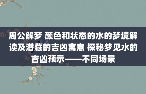 周公解梦 颜色和状态的水的梦境解读及潜藏的吉凶寓意 探秘梦见水的吉凶预示——不同场景