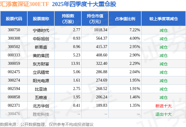 2月24日汇添富深证300ETF基金份额增加500万份,重仓股宁德时代、中际旭创、新易盛